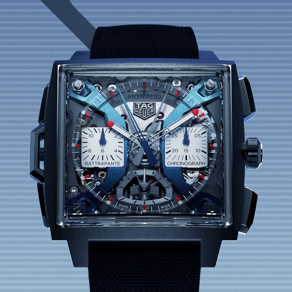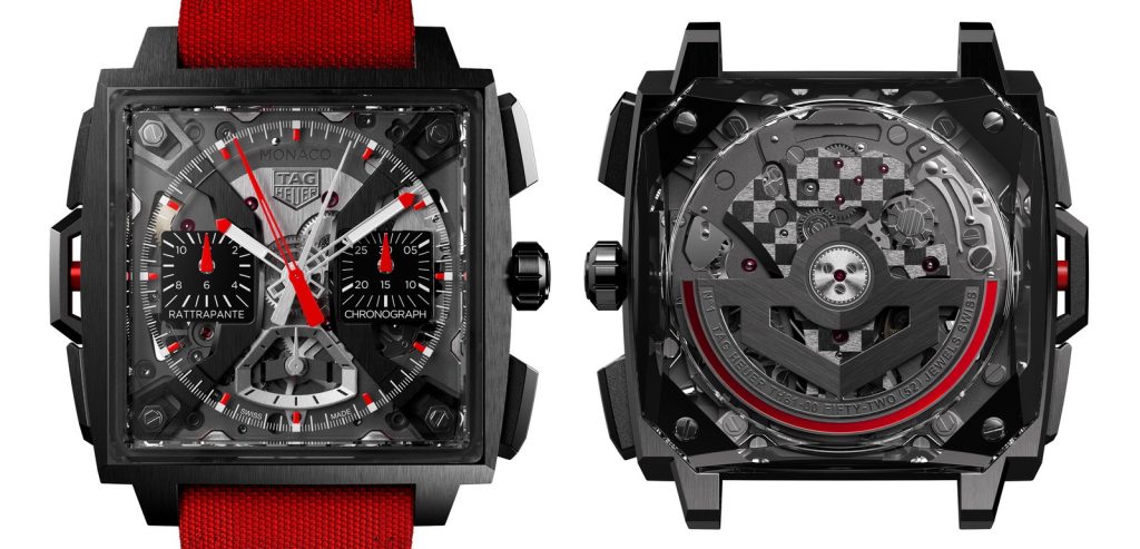 With the market dividing into two camps — the “economy” rattrapantes and the haute horlogerie rattrapantes – TAG Heuer puts a chip in its hand and declares that it is going “high” with the newest Monaco.
