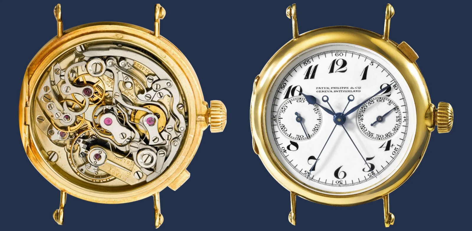 At the other end of the spectrum, split-second chronographs incorporating the traditional architecture (two column wheels and pincers) have recently been popularized by several of the leading “high-end” brands. Patek Philippe introduced the first split-second chronograph in 1923 (shown below), and currently offers the Reference 5370P at $297,530.