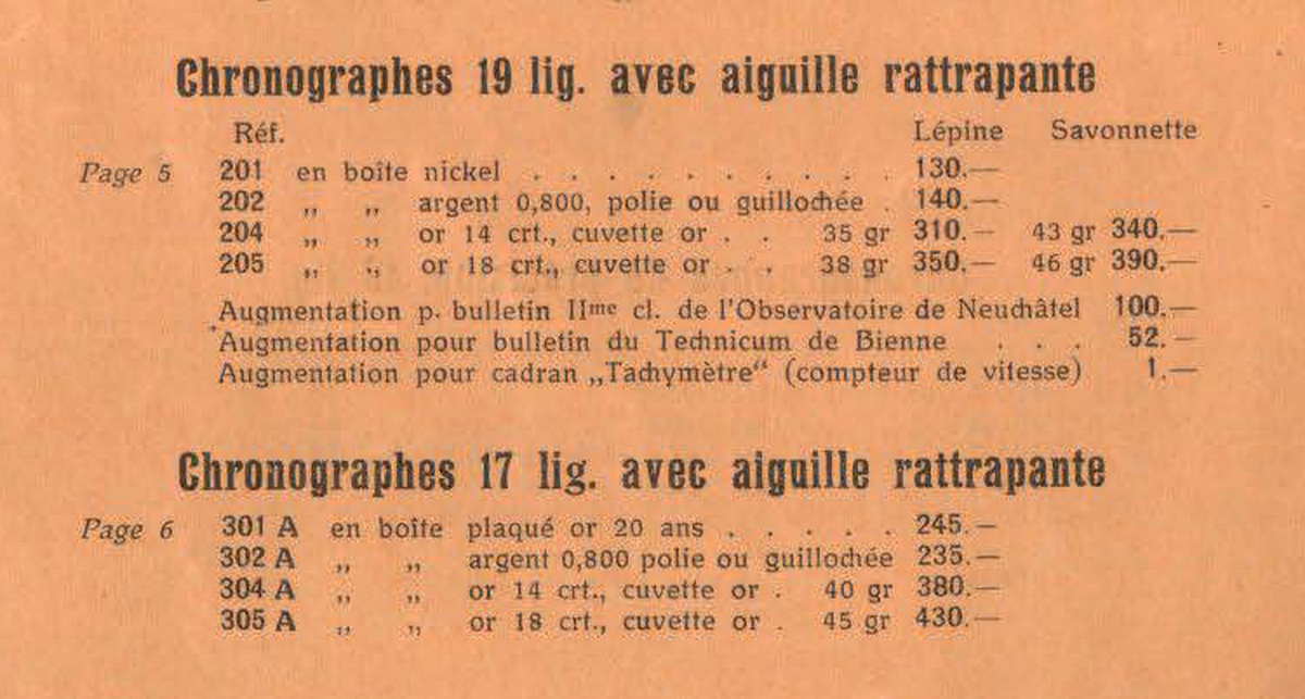 For example, as shown in the price list above, in 1930 the least expensive split second chronograph cost 130 Swiss Francs, while a simple pocket chronograph cost 40 to 50 Swiss Francs and a split second stopwatch cost just over 50 Swiss Francs. Similarly, in the 1975, we see Heuer’s pocket split-second chronograph (Reference 11.402) selling for 640 Swiss Francs, while the Autavia (Reference 1163) was priced at 225 Swiss Francs. These are complicated chronographs that require many parts, and considerable skill to assemble and adjust.