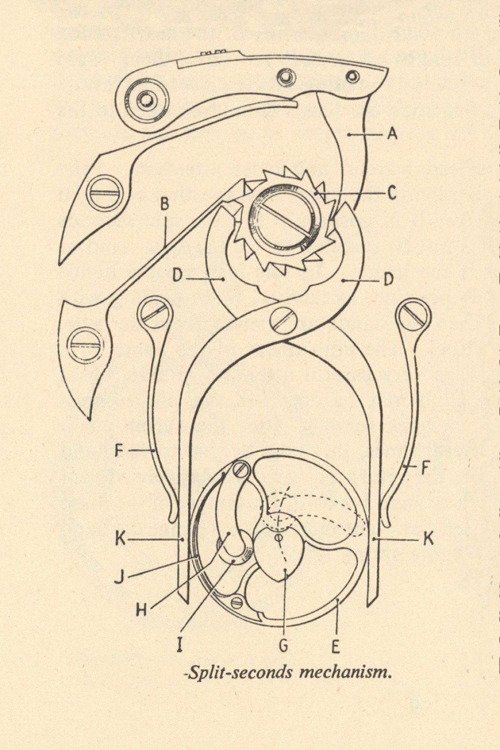 The traditional split-second chronograph has two column wheels, one to control the chronograph (start / stop / reset) and one to control the split-second hand (stopping the split-second hand and then releasing this hand so that it will rejoin the primary second hand).