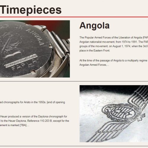 - Military timepieces – entirely new section; we have the shell; content to come soon.