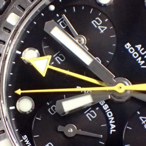 The TAG Heuer Aquagraph is a pleasure to wear and use as a chronograph. Winding is very smooth and setting has a very precise feel, with a nice hacking feature. The crown screws down and locks reliably, with no concerns that the threads are being stripped or abused. The chronograph operation is perfect — start, stop and reset are quick and reliable, even wearing heavy gloves in the winter. With the Aquagraph 2000, you will definitely know that you are wearing a watch, but it’s the sense of wearing a solid, reliable tool that is up to just about any task.
