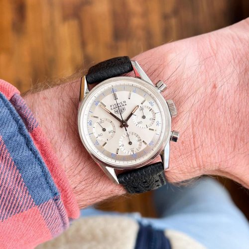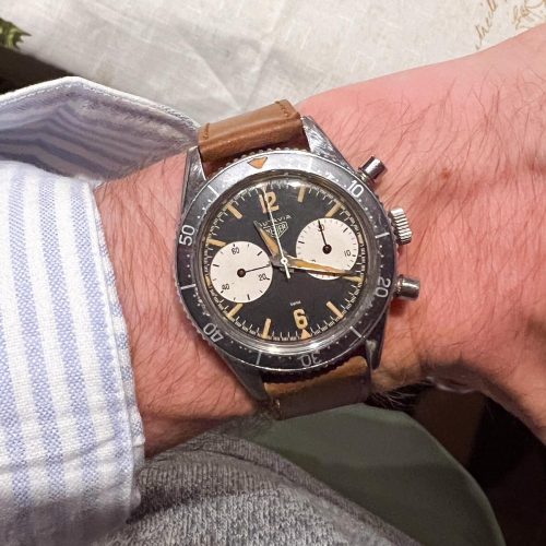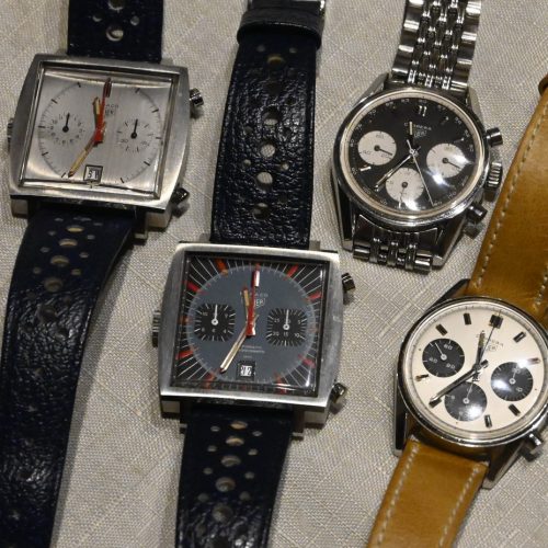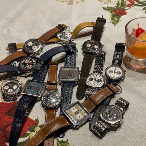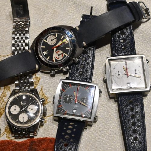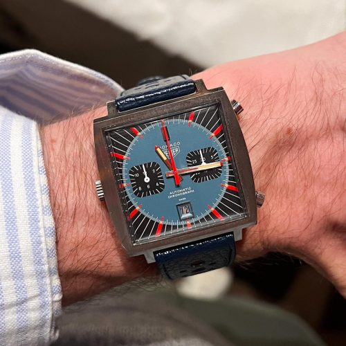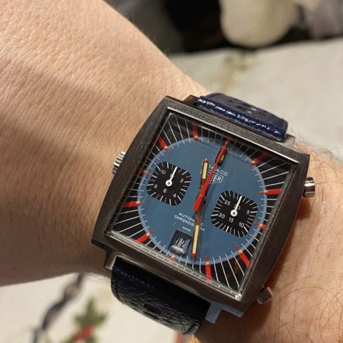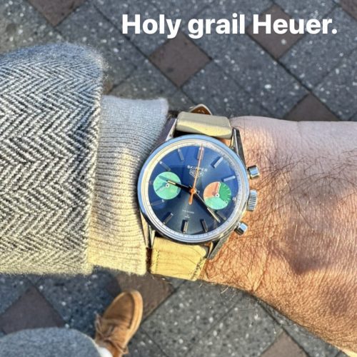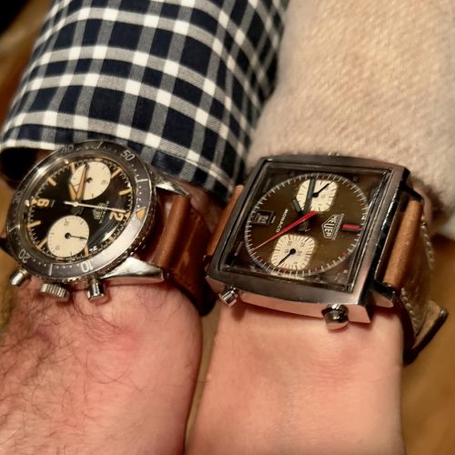 In the way of re-issues, we had the first re-issue to have the Jack Heuer colors (dark and light grays, with red accents), from 1964, and I proudly wore the latest of the Carrera re-issues, which was introduced by Watches of Switzerland a few weeks ago.