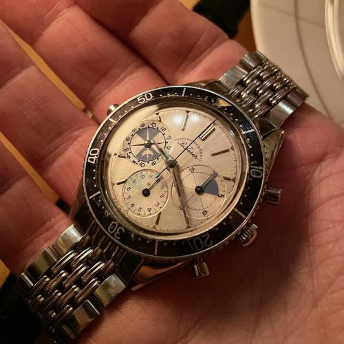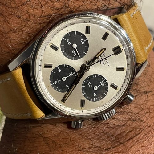 James Lamdin, of Watches of Switzerland, carried the Camaro flag proudly throughout the evening. He brought a great looking two-register “Panda” model, as well as a fantastic reference 73643 NT (three register, charcoal dial, with orange accents). It wouldn’t be a GTG without a couple of Camaros on the scene.