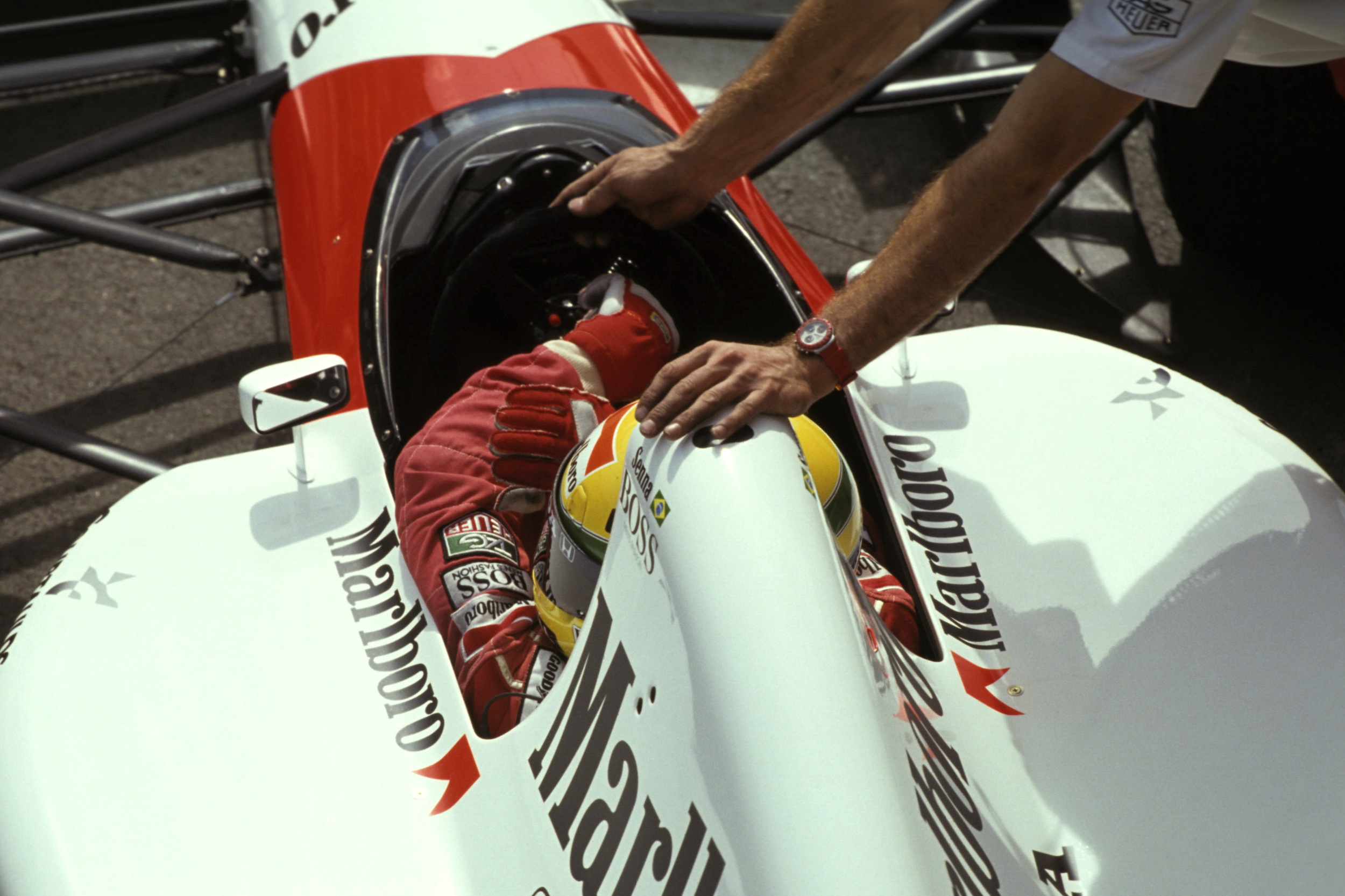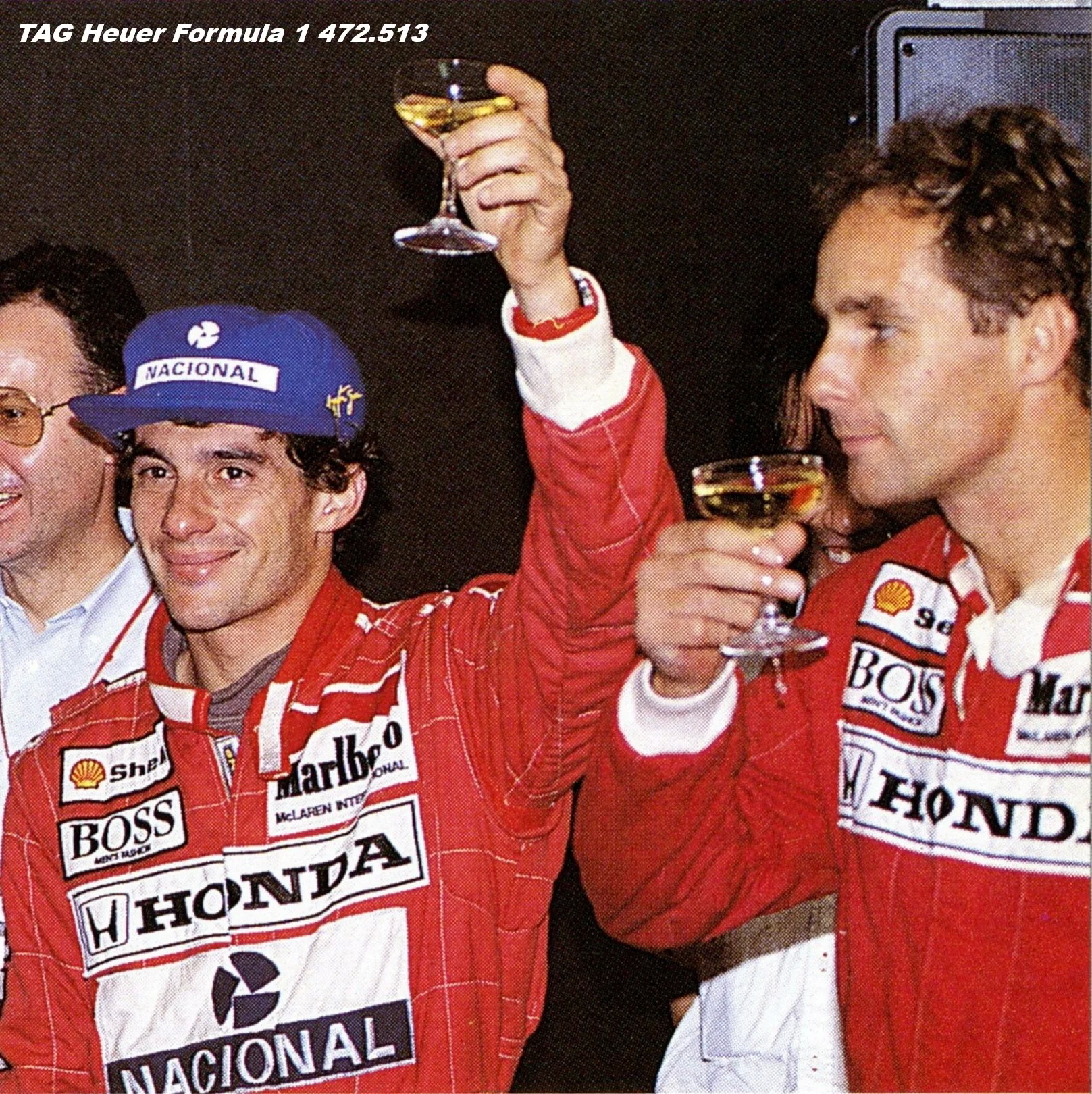 Enter Ayrton Senna in 1988, surely that’s when Senna started wearing TAG Heuer, right? Nope. Like Prost, Senna wore watches of his personal choosing. Neither driver wore a TAG Heuer patch on their racing overalls that year either. The TAG Heuer logo was only on their ‘88 McLaren MP4/4 race cars.