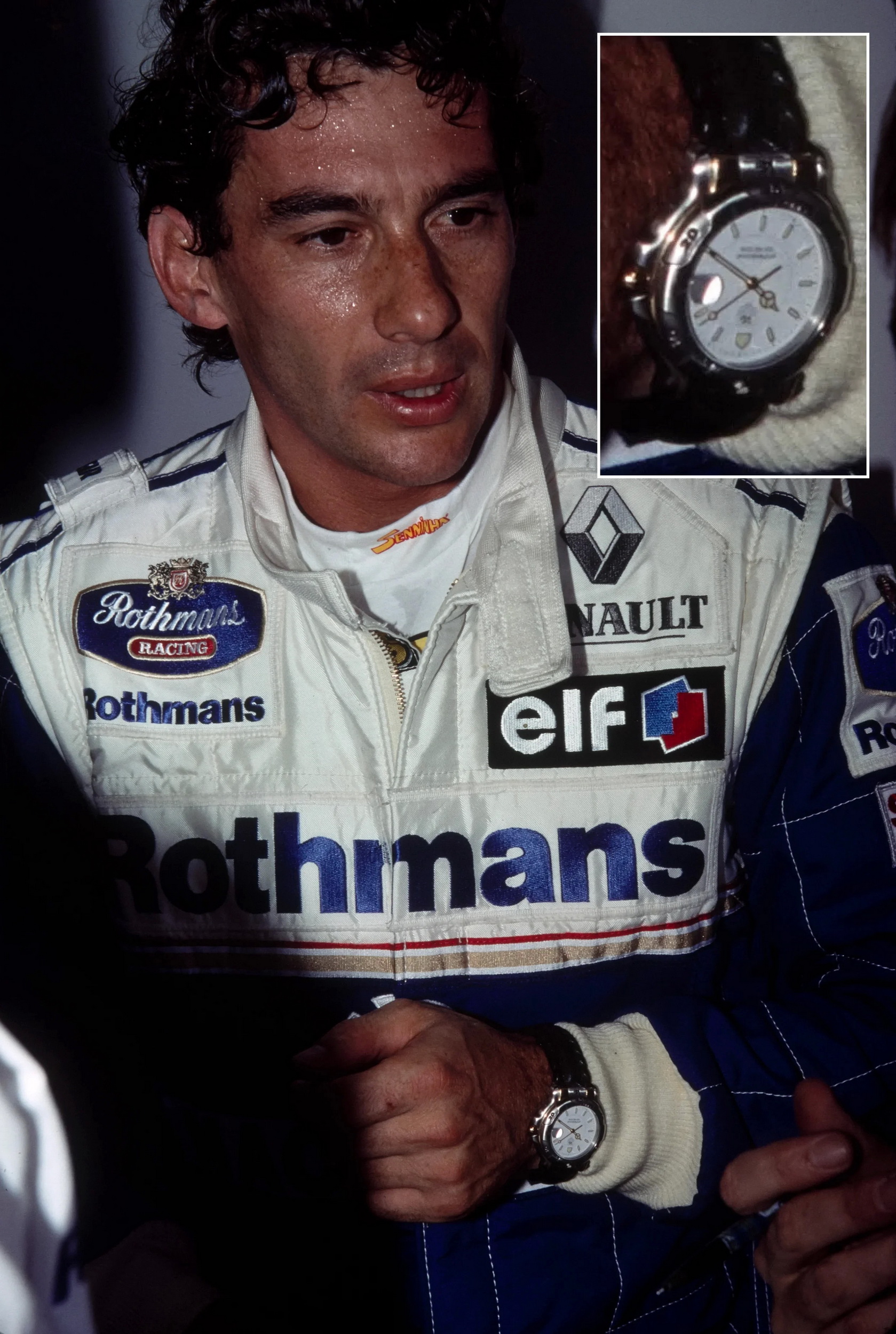 Even the image that TAG Heuer uses to promote Senna’s 6000 shows that Senna is wearing the quartz WH1151 in his ‘94 Williams FW16 F1 car (see below).