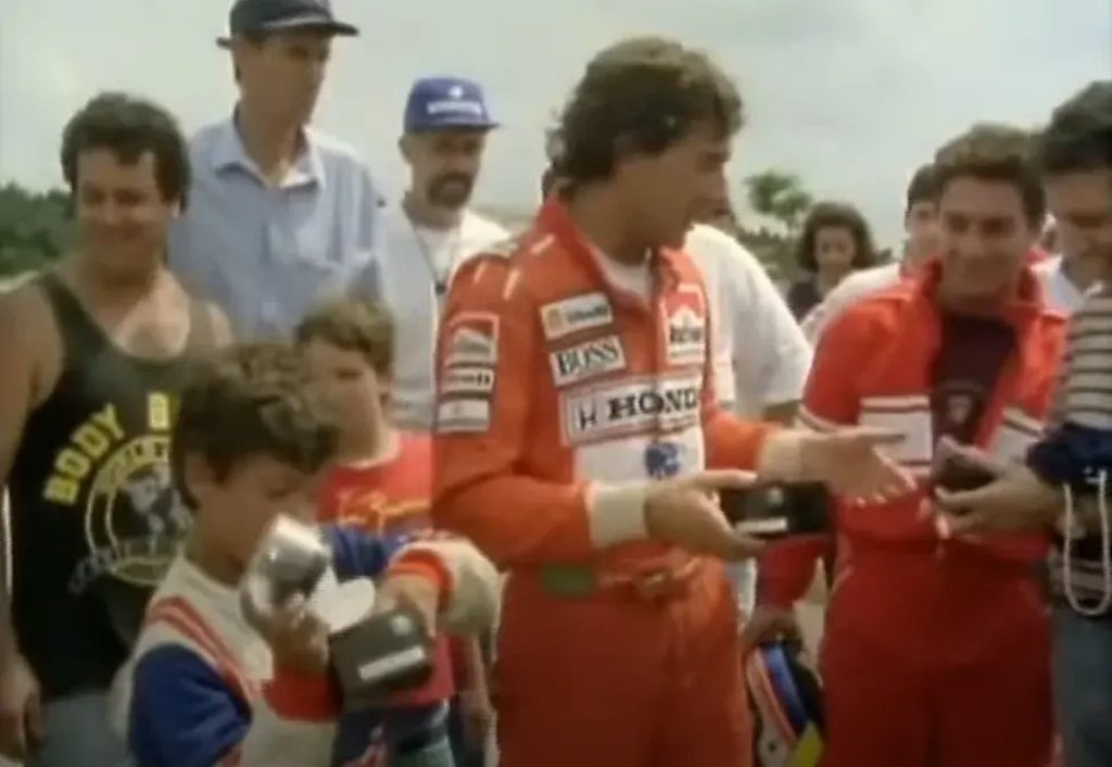 In addition, Senna was known to give brand new TAG Heuer watches as gifts to friends, relatives, and close business associates. He even gave TAG Heuer F1 watches to kids as prizes at Karting events that he sponsored. The image below is from a documentary on Senna, made after his ‘90 championship. These kids as adults today could certainly claim they own a TAG Heuer watch personally owned and given to them by Senna.