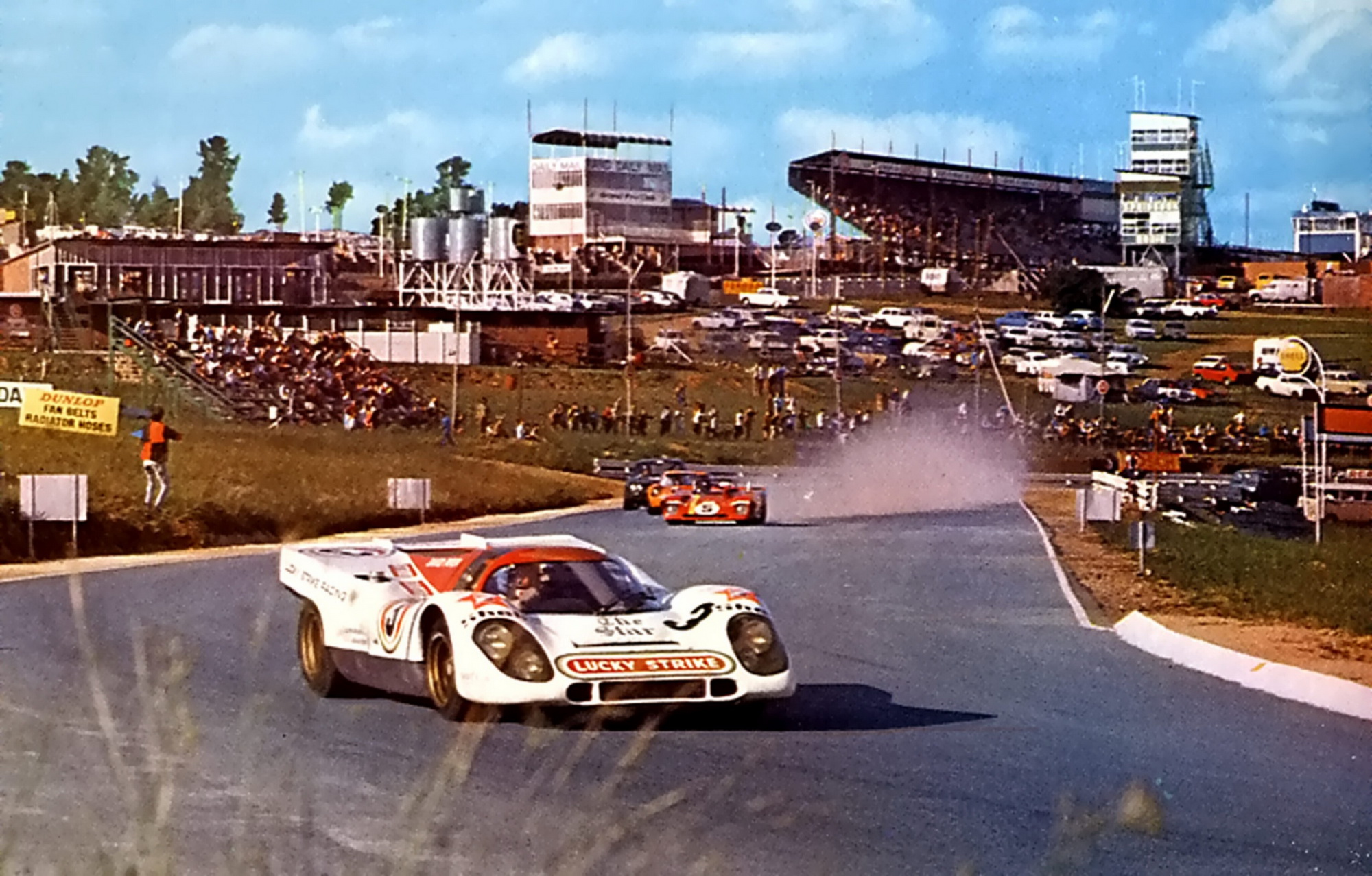 In the 1971 Nine Hours of Kyalami, American racer Tony Adamowicz (teamed with the inexperienced Mario Casoni) drove a Porsche 917, that had been assembled largely from parts found in the bins, facing off against Brian Redman and Clay Regazzoni in one of the brand new Ferrari 312P cars, with Jacky Ickx and Mario Andretti driving a second 312P. The Porsche 917 was in the Lucky Strike cigarette livery.