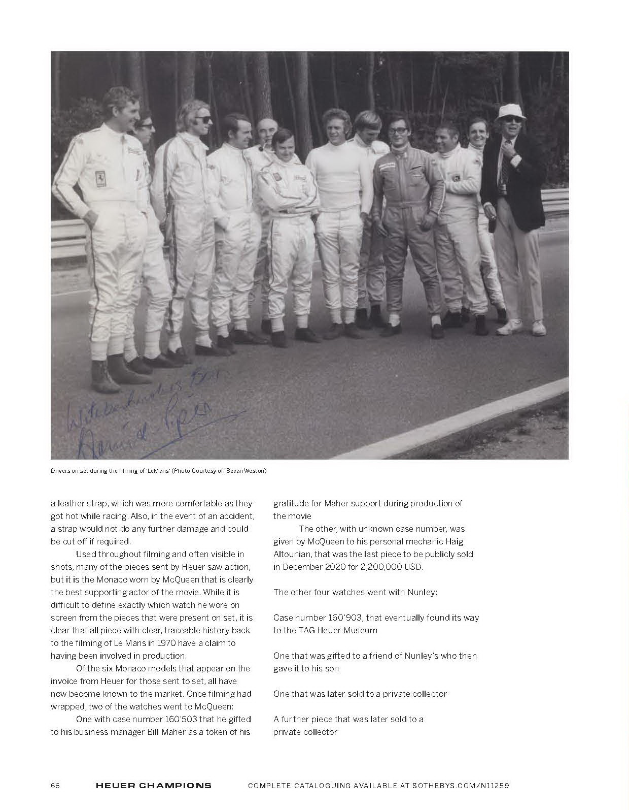 Weston purchased this Monaco at the prop sale, and wore it regularly during his career as a race mechanic and crew chief. In 2010, Weston sold this Monaco to an anonymous collector, who is the Sotheby’s consigner of Lot 128 in the Heuer Champions auction.