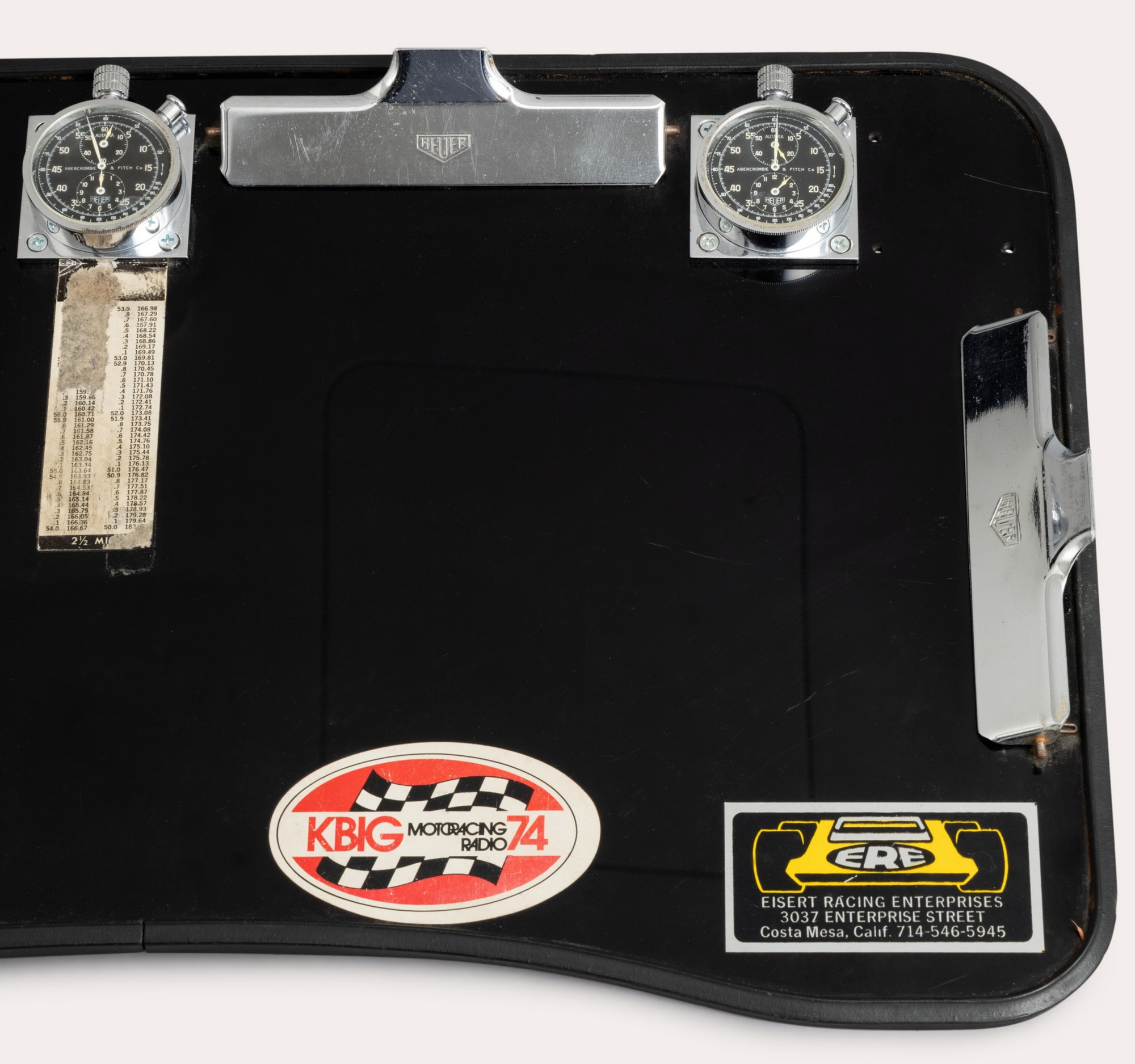 This timing board, with its matched Heuer Autavia dashboard timers likely dating from the late 1950s, appears to have been retired after the 1973 Formula 5000 season. We can assume that for its future endeavors, Eisert Racing Enterprises would switch over to state-of-the-art Heuer electronic timers, perhaps the bright red Microsplit models first shown in Heuer’s 1973 catalog.