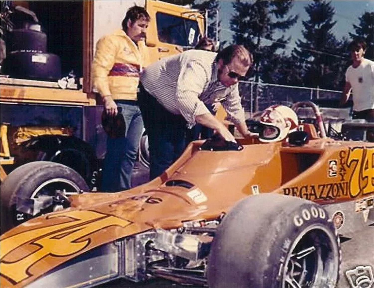 There were approximately 20 timing sheets clipped to this Heuer timing board when it was purchased by Jeff Stein, and the top sheet under one of the clips indicated that the driver was “Clay Reg”. Indeed, for the last race of the 1973 North American season (September 30), Regazzoni drove for the Eisert team, qualifying third in the Seattle race, behind Redman and Donahue, but retiring with a fuel cell problem after only five laps. Two weeks later, Regazzoni would drive this same car in British Formula 5000 race, at Brands Hatch, finishing 12th.