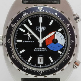 (6) higher-profile automatic Skipper, with black dial and bezel (case borrowed from Autavia Ref 11630)