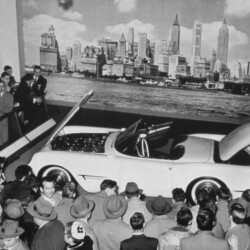 On January 17, 1953, at the Waldorf-Astoria Hotel in New York City, 45,000 people gathered for the General Motors “Motorama” automobile show. All GM brands participated in the show, but a small white car from Chevrolet quickly became the talk of the event. It was a running prototype of the Corvette, and the tremendous enthusiasm of the crowd for this car led senior Chevrolet executives to make the decision to move quickly to produce the Corvette.