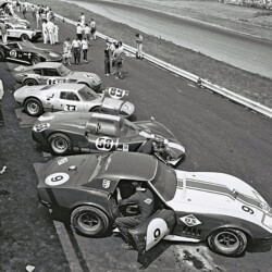 The Grand Sports used a complex steel space frame and fiberglass panels for the bodywork, weighing in at around 1,900 pounds, compared with 3,250 pounds for a standard Corvette. Its 377 cubic inch engine put out 550 horsepower. In December 1963, at Nassua Speed Week, it was “mission accomplished” for the Grand Sports Corvettes, with Dick Thompson finishing fourth overall, with the top Cobra finishing seventh.