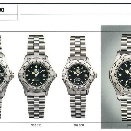 The 6000 Series was offered for 10 years, being discontinued in around 2002. At that time, TAG Heuer began to shift its focus away from the numbered series of dive watches, with its key collections including the Link, Kirium and Alter Ego, along with an emerging series of classics, the Carrera, Monaco, Monza and Targa Florio. The 2000 Series was the only “numbered” Series to continue in the catalog, remaining until 2005.