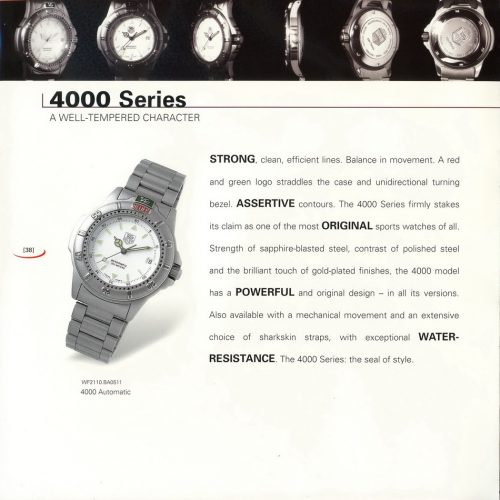 The 4000 Series made its last appearance in the 1997 catalog. This coincided with TAG Heuer’s introduction of the Kirium collection, its new line of avant garde watches.