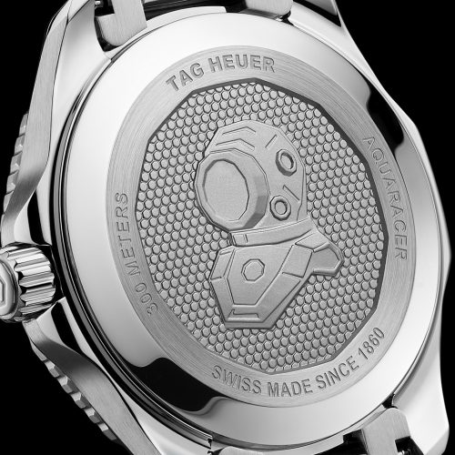 TAG Heuer has redesigned the case-back of the newest Aquaracer, with the dive helmet remaining the central image, but the theme of polygons (8-sided and 12-sided) being continued all across the case-back.