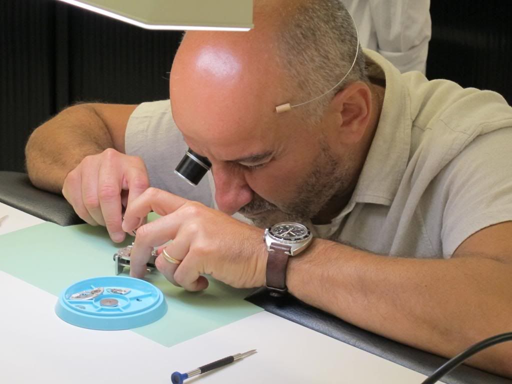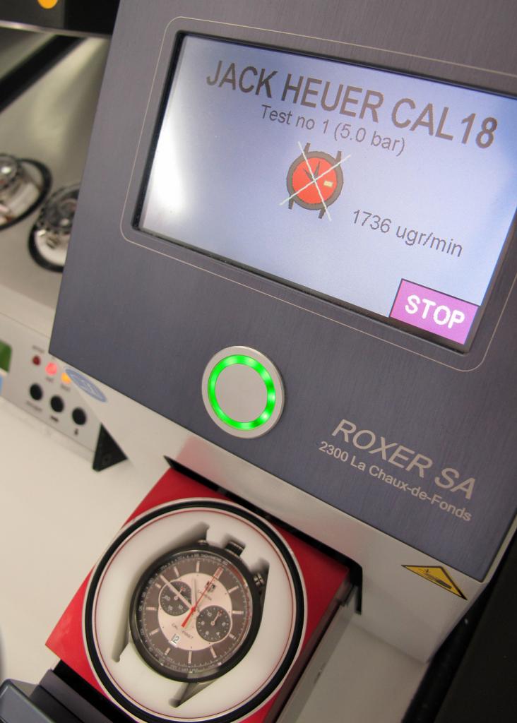 It was a very interesting tour, where the process is a mixture of the automated and steps still done by hand. To a mixed reception by the group, there are those who regret the amount of automation but I’ll confess to finding the processes intriguing. Movements are whisked between desks in a dust-free conveyor system, oil is applied in microscopically correct volume, screwdrivers preset to 0.39 Newton centimetres. And yet later on, hands seen through magnification are eased into place by hand. Tray after tray of 1887 movements, Jack Heuer limited editions. The scale is impressive, the machinery modern.