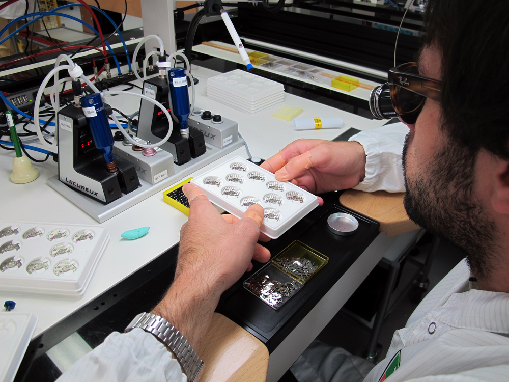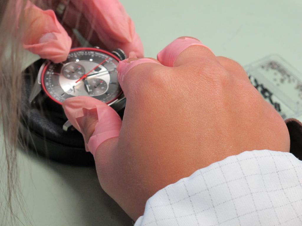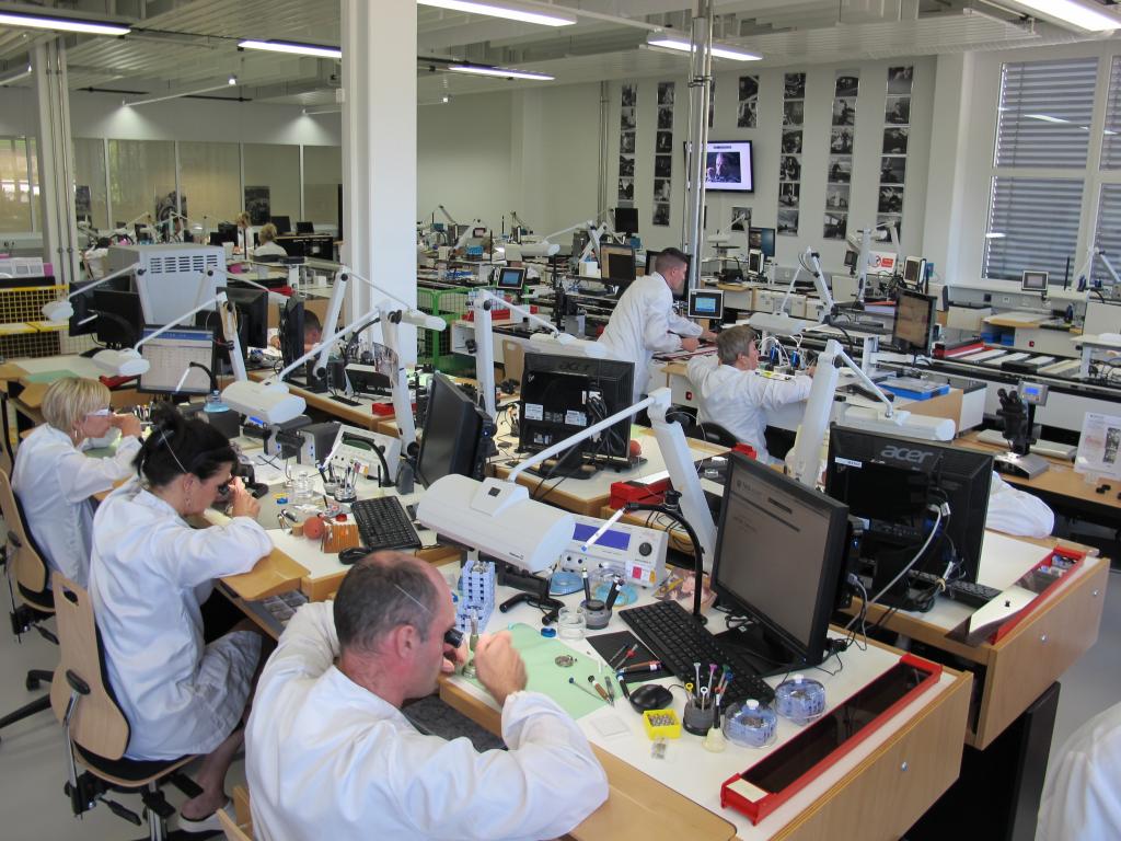 The next day sees us, to varying degrees of freshness, making our way into town to visit TAG Heuer itself. Received by our ever friendly and helpful hosts Marie and Alessia, we split into three groups as there were too many of us to do it all at once. My group had the factory tour first, so after donning fetching white “lab coats” with TH branding, off we went.