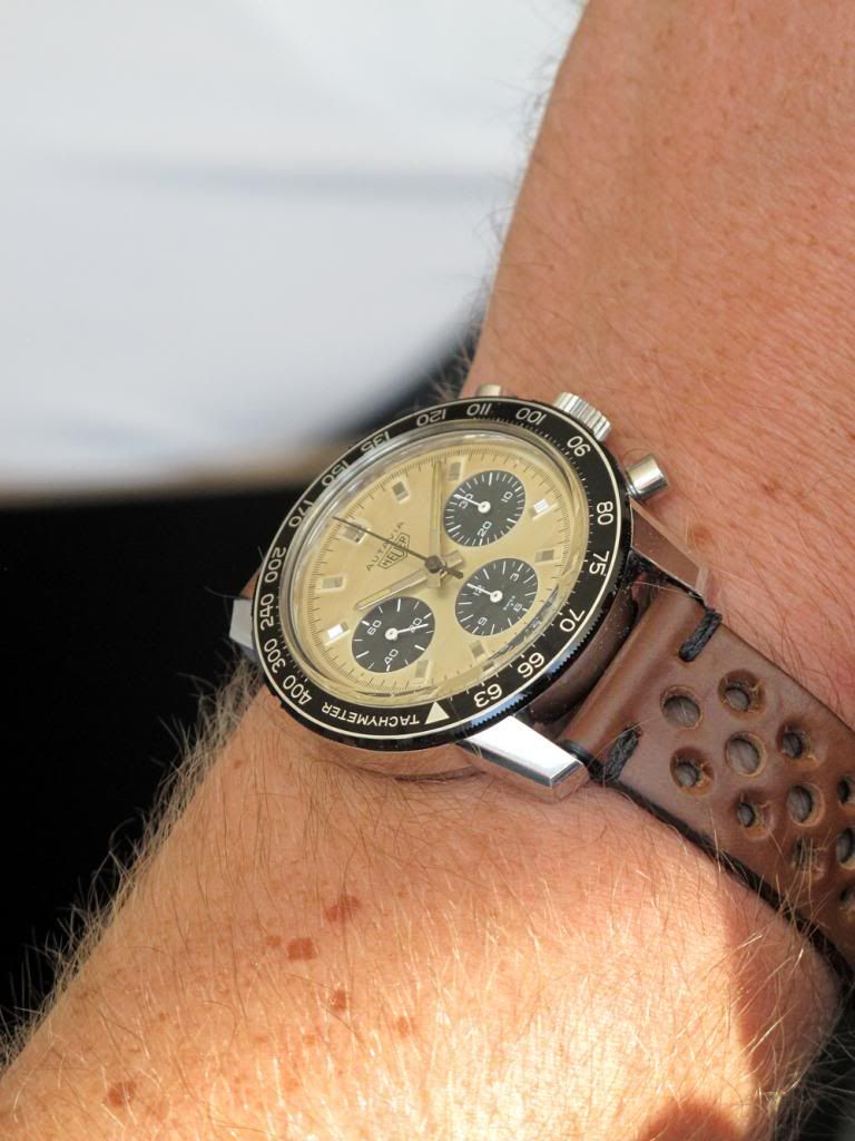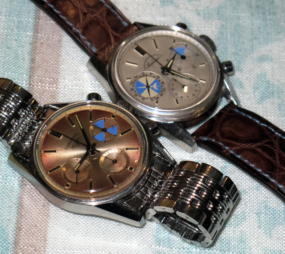 Two amazing Heuer Timepieces, the left one is Paul Gavin’s Yachting Carrera with unequalled patina and presence. On the right we have Paolo Bernardi’s Seafarer in first execution 2446 case.