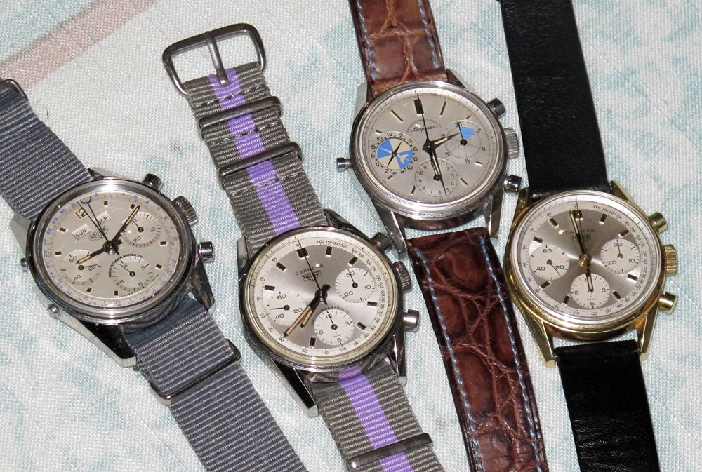 Heuer Carrera Ref.1158 – Club! Apparently quite a “common” watch. Top row; Michael Wirthgen, Mick Tock, Laurent, Bouzoulouk and Abel Court. Bottom row; Shaun Wainstein, Jasper Bitter and Paolo Bernardi.