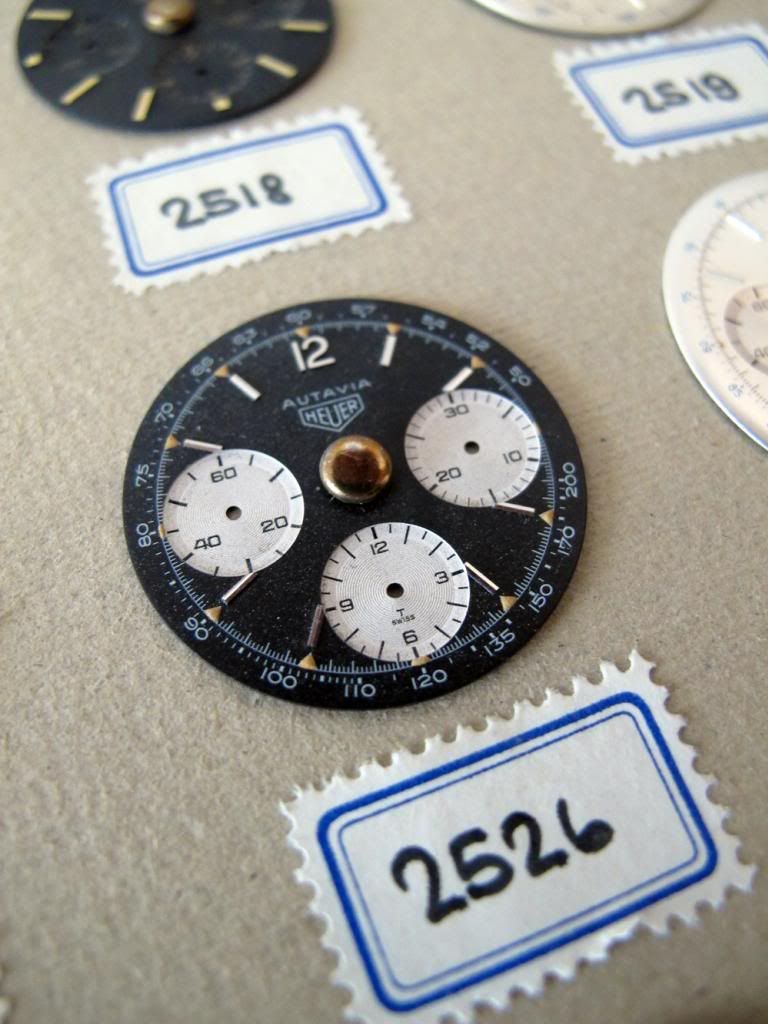 Unseen before…all dials officially produced for Heuer watches…all on cardboards with internal refs. Impressive and never exposed before.