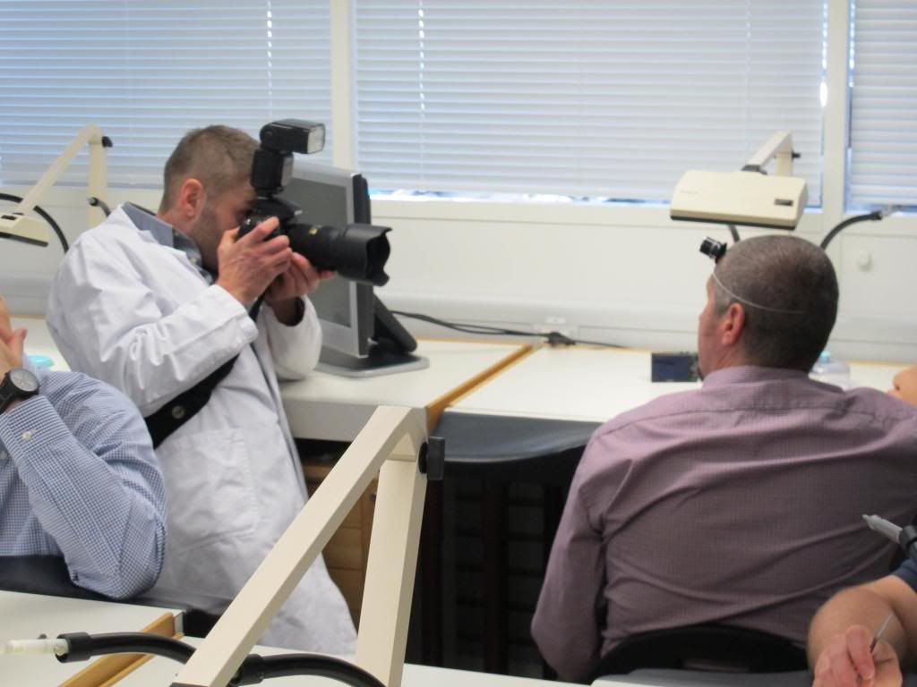 Peter Moller explaining his collection, Darren Stuart, Henrik Schreiber and Jean-Pierre Magalhaes.
