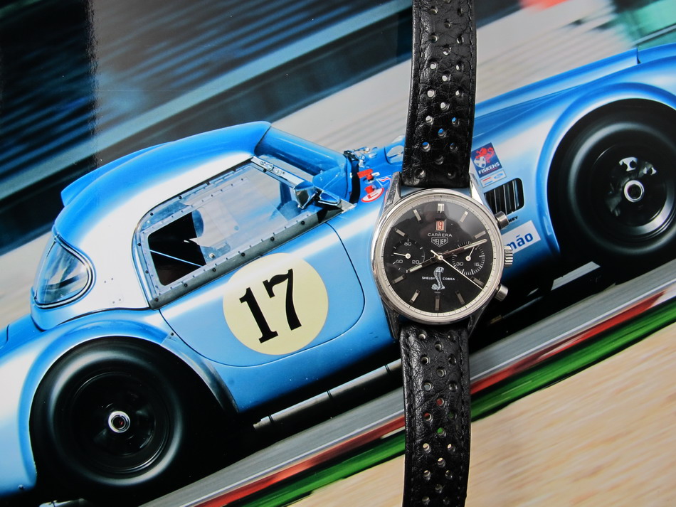 There is also a historic connection between Carroll Shelby and the Heuer Carrera. When Carroll Shelby was running his automobile company and his racing team, he ordered special editions of the Carrera 45 Dato, which had the Shelby Cobra logo on the dial.