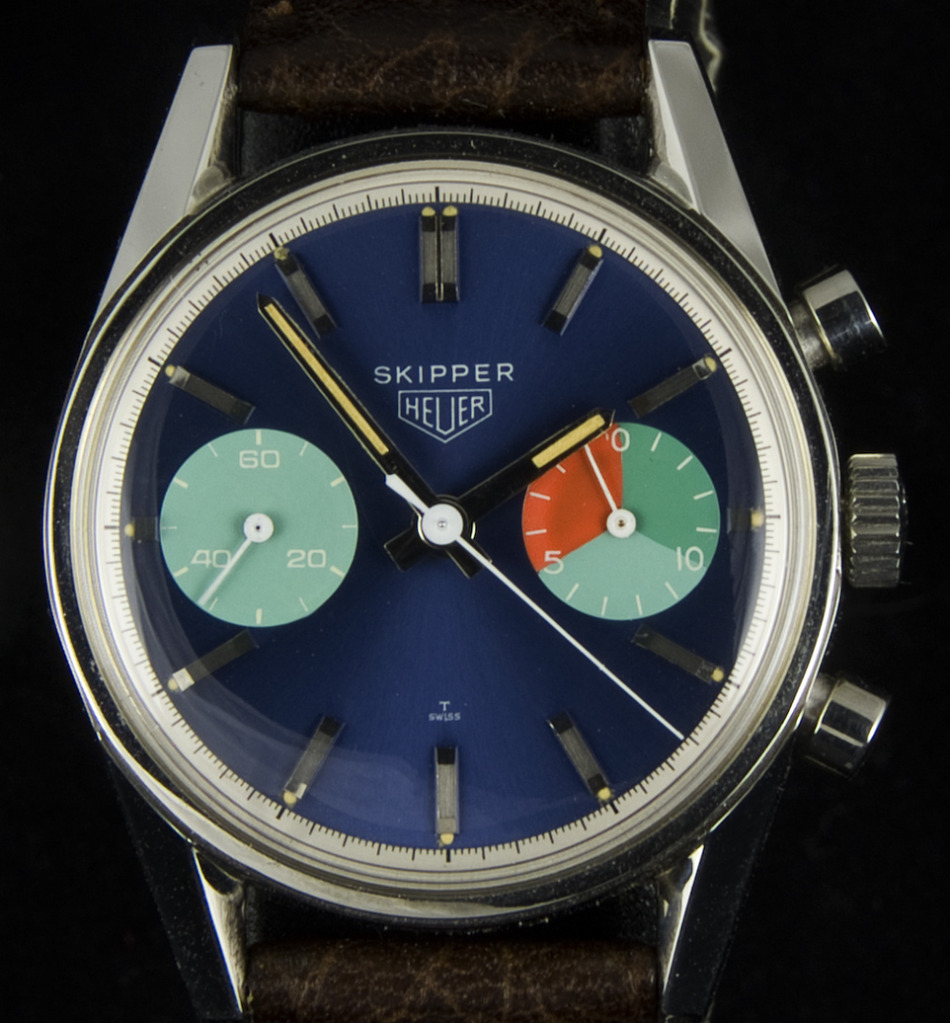 Though not technically a “Carrera” it is also noteworthy that the first version of the Skipper chronograph resided in the Reference 7753 case. This Skipper, known to collectors as the “Skipperrera” used a modified version of the Valjoux 7730 movement, geared for the 15-minute countdown.