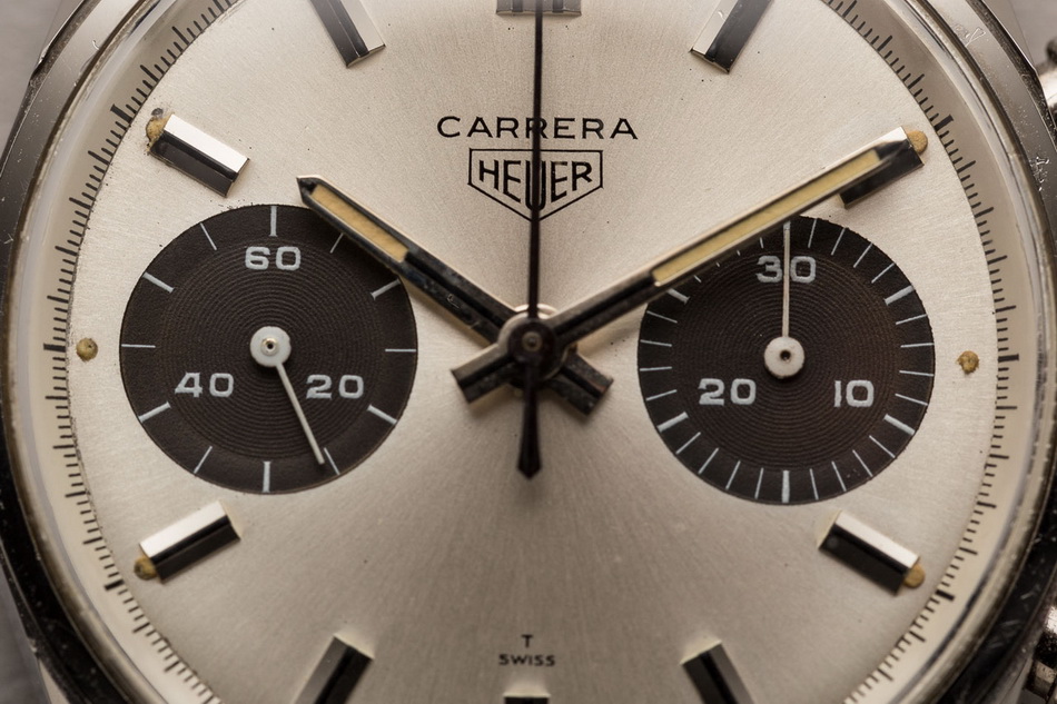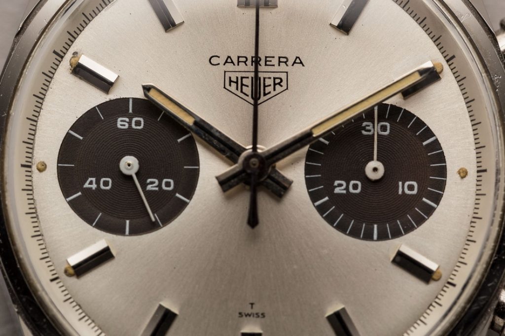 Heuer offered 10 versions of the Carrera 30, with differentiating elements being the colors of the dials, white or black, the use of matching or contrasting registers, and the use of scales for tachymeter and decimal minutes calculations.