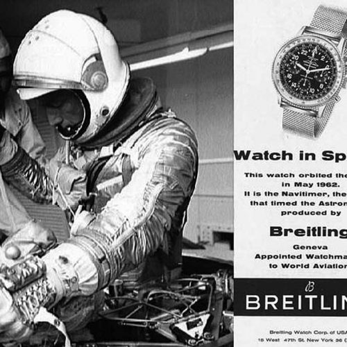 During his flight on May 24, 1962, Scott Carpenter became the first astronaut to wear a Swiss wristwatch in space, when he wore a Breitling “Cosmonaute” on his Mercury-Atlas 7 flight. [The dial of that watch was marked “Navitimer”, rather than “Cosmonaute”, but the watch worn by Carpenter would soon be named the “Cosmonaute”, so we use that name in this posting.]