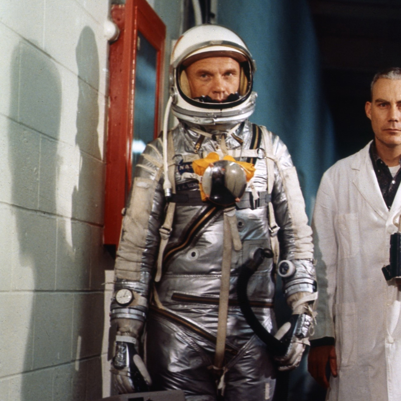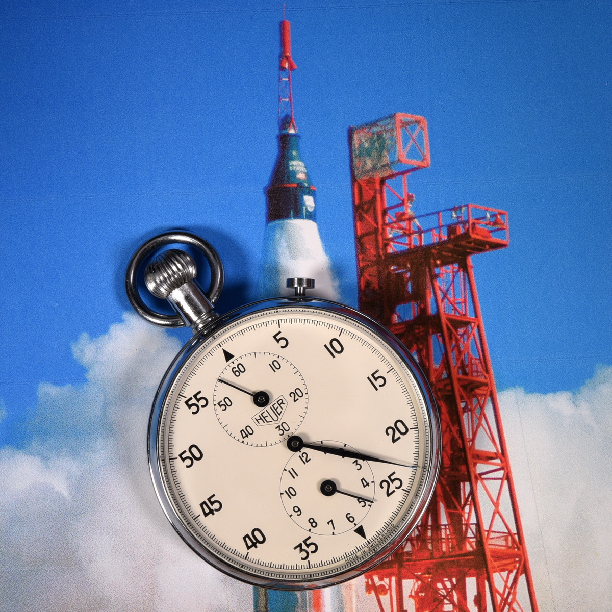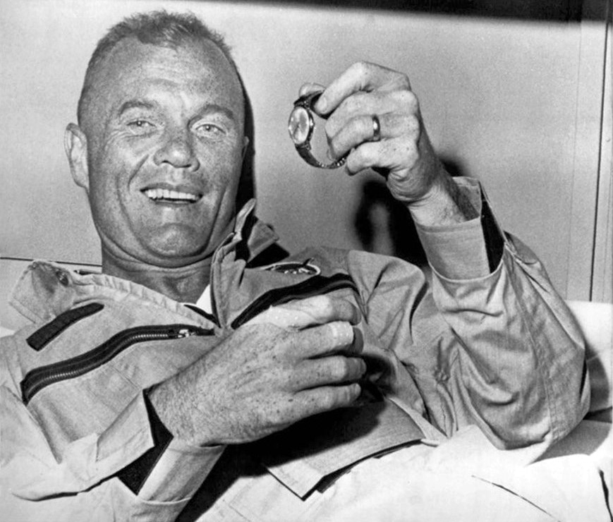 During his flight on February 20, 1962, John Glenn wore a Heuer stopwatch (reference 2915 A) on his right wrist, on top of the sleeve of his spacesuit.