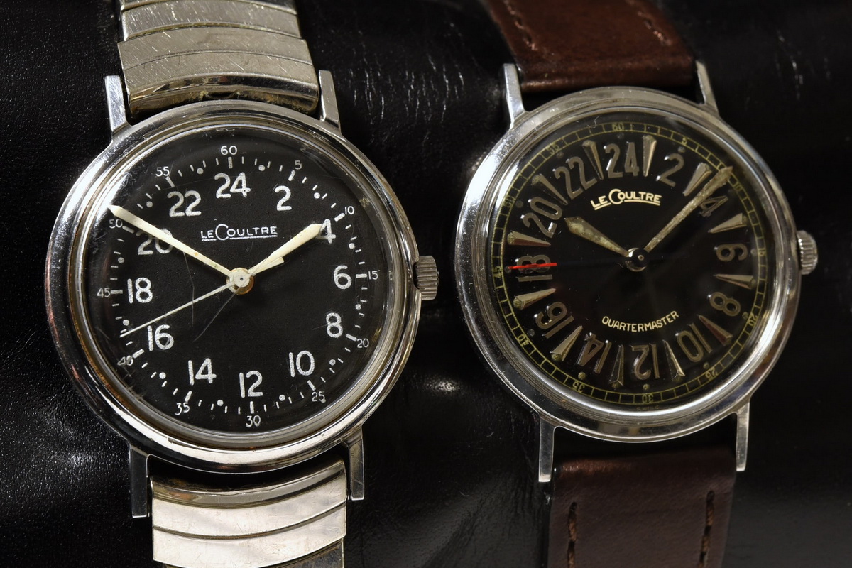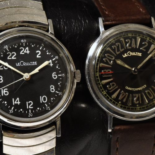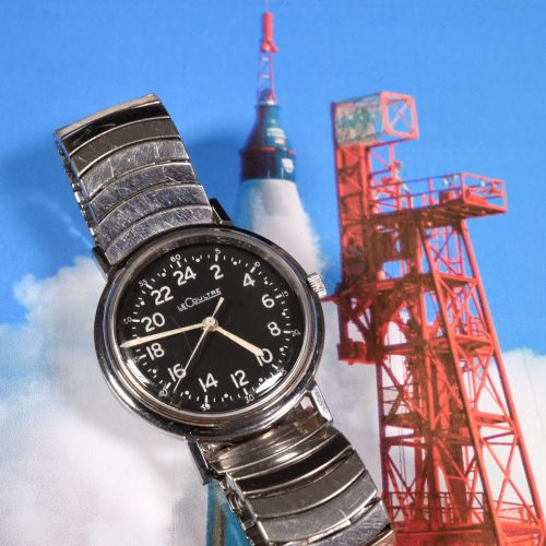 Accordingly, Johnson ordered eight watches with true 24-hour indication, one for each of the Mercury Seven astronauts and one for himself. The watches that were given to the Mercury Seven astronauts were the LeCoultre Quartermaster model, except that the dial and hands of the Quartermaster were refinished, to remove the ornate numerals and markers and to repaint them in the style of a military watch – the bright white Arabic numerals and hash-marks, with bright white hands. Reviewing NASA photographs we see most of the Mercury Seven astronauts wearing these watches, while they were training for their flights.