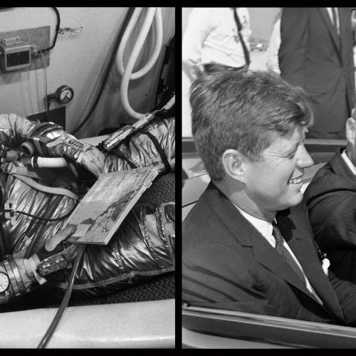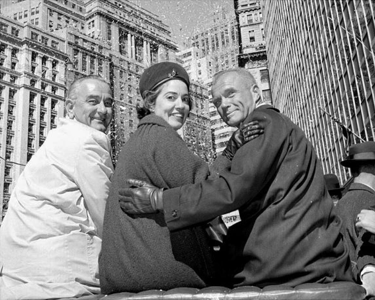 Immediately after his flight, the celebrations of John Glenn as a national hero began. The first parade was in Cocoa Beach, Florida (where John Glenn was awarded NASA’s Distinguished Service Medal), then Glenn traveled to Washington, DC for a parade and address to Congress, and his East Coast swing ended in New York City, where he visited the United Nations and his ticker tape parade attracted four million people (by contrast, the parade for Charles Lindbergh had attracted three million). The final parade was in Glenn’s hometown, New Concord, Ohio.