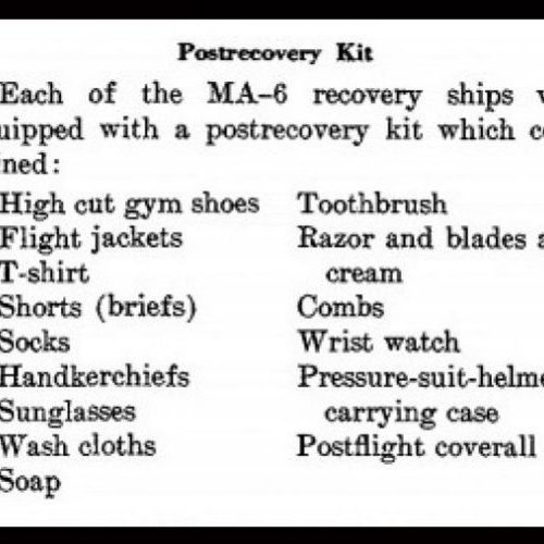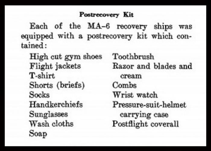 According to NASA reports, each of the recovery ships for MA-6 was equipped with a post-recovery kit that would contain various items of clothing, toiletries and other items that Glenn would need for the time before he returned to the United States. One of the items included in each of the recovery kits was a wrist watch, and we see Glenn showing off this watch in some NASA photos.