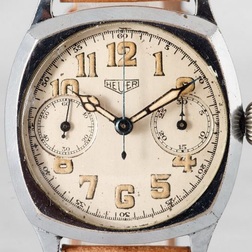 manual-wind, two-register chronograph (30 minute capacity) in a chrome-plated case; uses Valjoux VZ movement (13 ligne)
