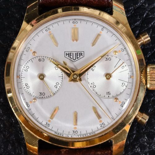 Manual-wind; two register chronograph; dauphine hands with luminous inserts; Valjoux 23 movement; cases are stainless steel, bi-metallic, or 14 karat gold, and measure 34.5 millimeters, across the dial