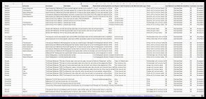 Here is a small portion of the spreadsheet showing the fields in the database.