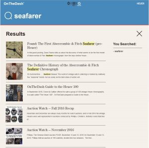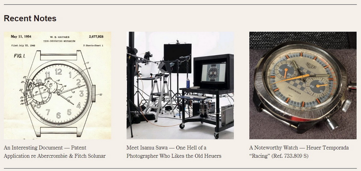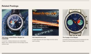 The new OnTheDash addresses this by allowing us to link from the Index pages and Galleries to postings about the watches, whether included OnTheDash or on other sites. For example, scroll down to the bottom of our Index page showing the eight models of the Skipper, and you will find some related references – in this instance, postings on Hodinkee, HeuerChrono.com, and OnTheDash.
