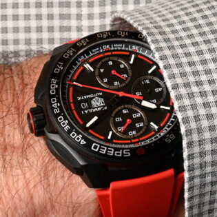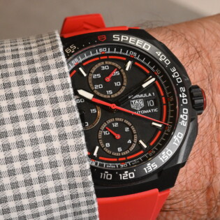 While no 44 millimeter chronograph is likely to win the annual prize for being my most worn watch, the new TAG Heuer Formula 1 Chronograph could easily take a spot on my “grab and go” shelf, alongside the Fragment Formula 1. It handles well, feels great on the wrist and just as the vintage Autavias, Carreras and Monacos connect today’s collectors to the racing of the 1960s and 70s, the new Formula 1 Chronograph captures the style of the modern racecars that we find on today’s Formula 1 grids.