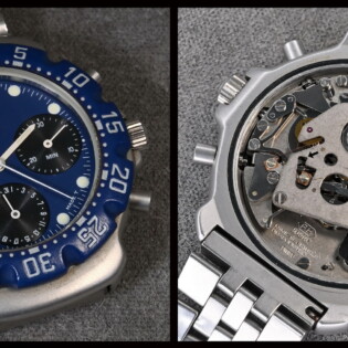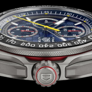 Today’s Materials and Technology — Beyond its design, the new generation of Formula 1 chronographs make good use of advances in watchmaking materials and technology. Titanium, with state-of-the-art DLC coating or a sandblasted finish, has replaced the stainless steel or composite used to make earlier models. Bezels have gone from crude plastic to aluminum and forged carbon. The Calibre 16 movement is tried and true, a completely different machine than the crude quartz movement that powered the first Formula 1 chronographs in the late 1980s.