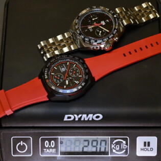 On the rubber strap, the new Formula 1 Chronograph weighs in at 111 grams versus 179 grams for the Fragment Design model on its stainless steel bracelet, so the new model feels entirely different on the wrist. It’s far lighter but also feels more balanced than the Fragment Design model, which tends to feel top heavy.