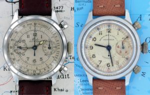 Secondly, there are additional markings to the inside of the Seafarer caseback. The interior of the standard Multichrono caseback is only marked with the serial number and a reference to British Patent No. 385509 which was accepted in 1932. The Seafarer caseback bears the same text in the same position, but also the further text ‘Abercrombie & Fitch Co. New York, Rustless Steel’ and ‘Made in Switzerland’.