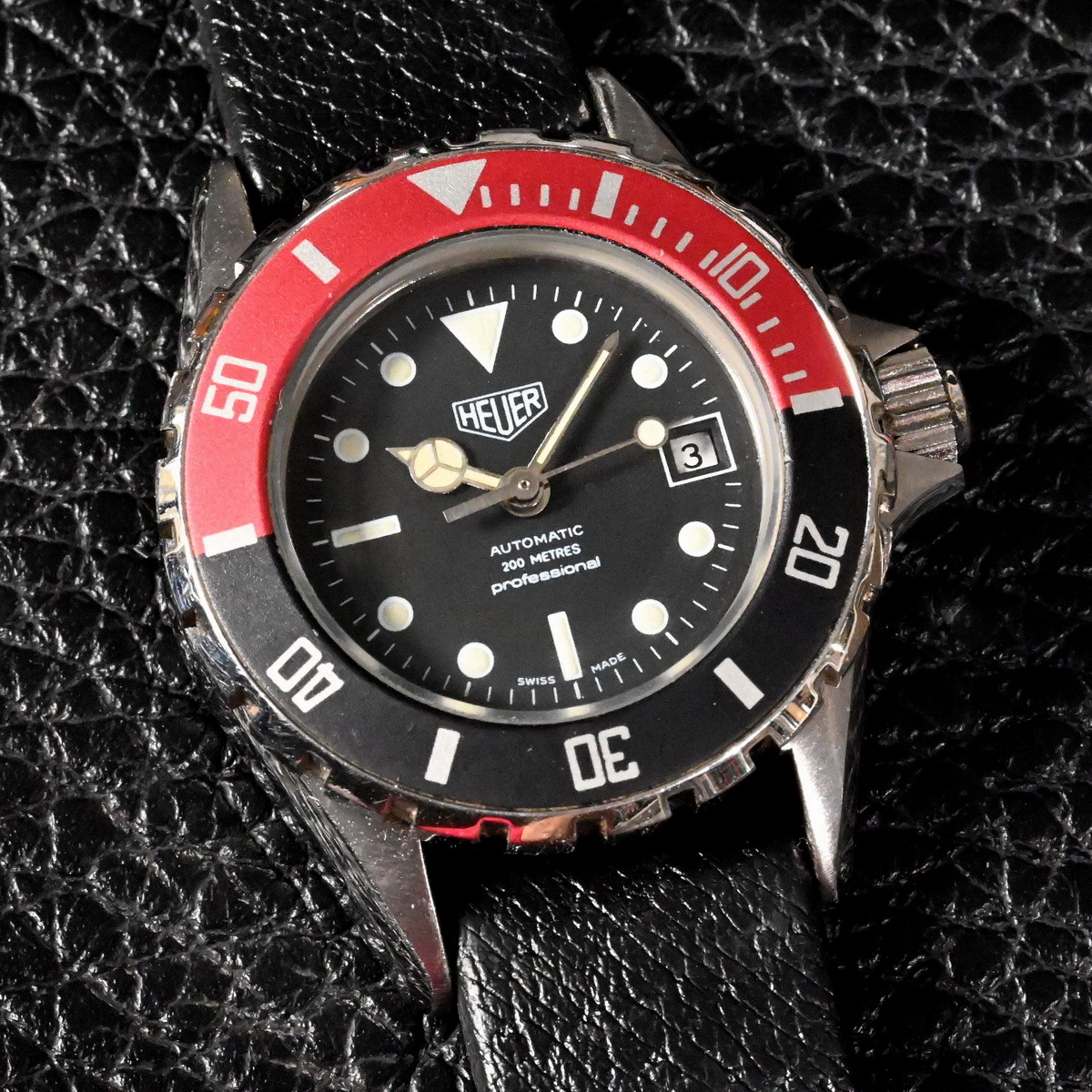 Heuer’s first dive watches met with good success, and by 1980 Heuer had moved production of the watches from France to Switzerland. This second generation of Heuer dive watches is marked with the familiar “Swiss Made” text on the dial.