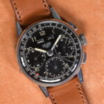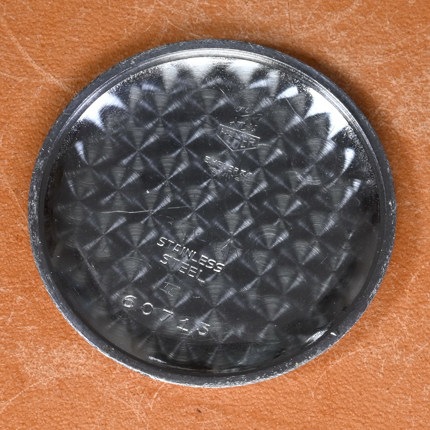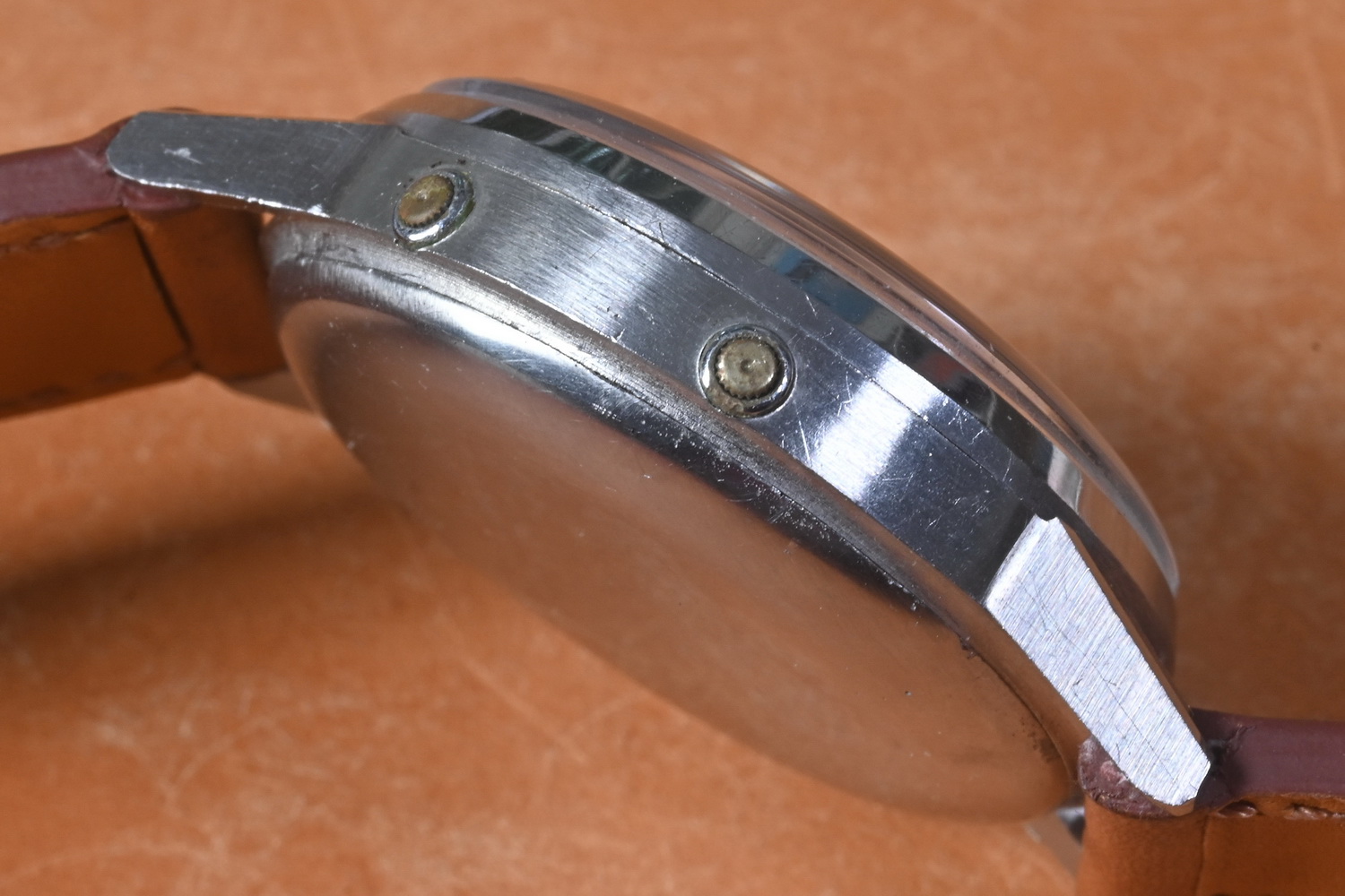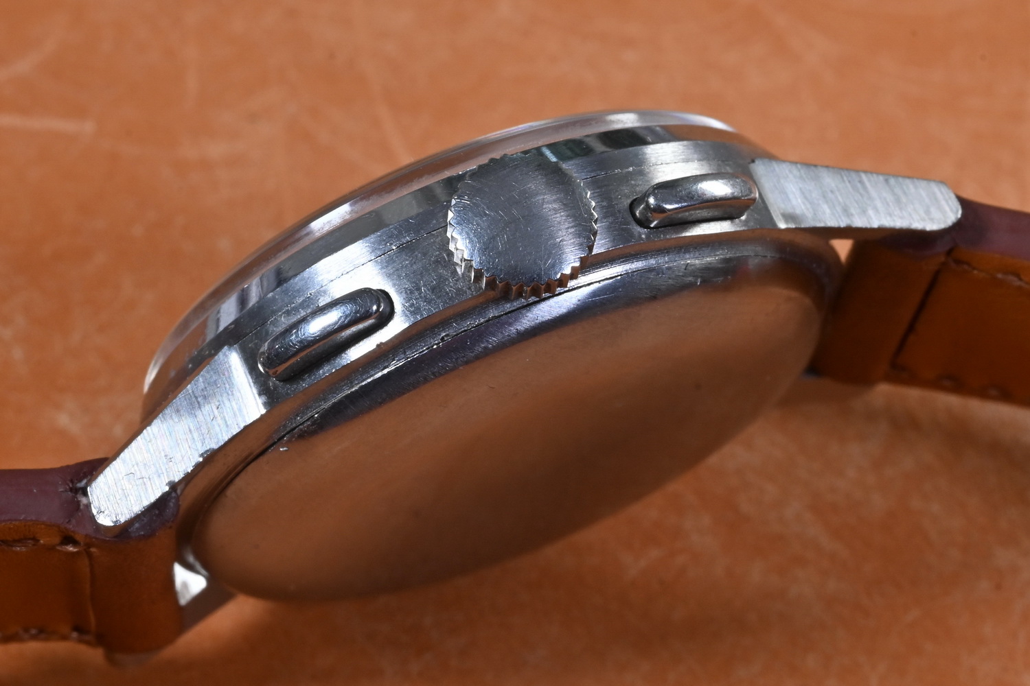 Black dial, with gold printing for day, date and month; radium numerals and hands