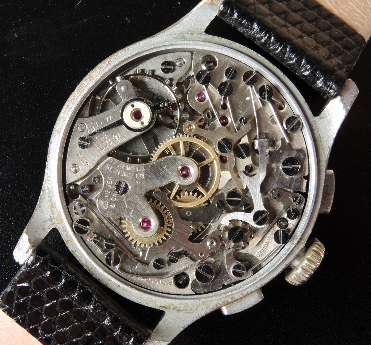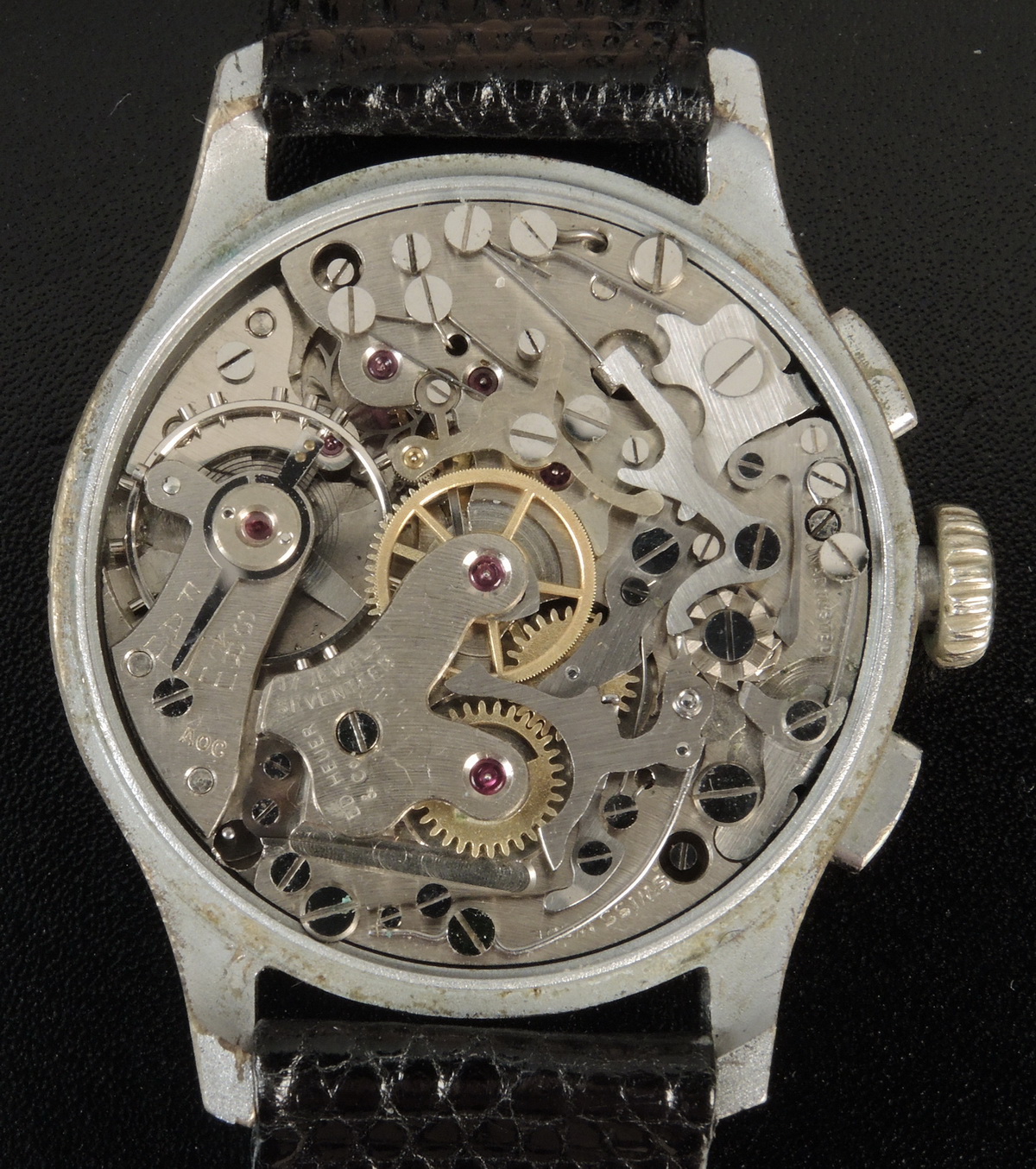 Reference 3249 T is an "up / down" chronograph, with the "Heuer" shield within the top recorder; Tachymeter scale on dial (60 to 1000); chrome-plated case; powered by Valjoux 77 movement.