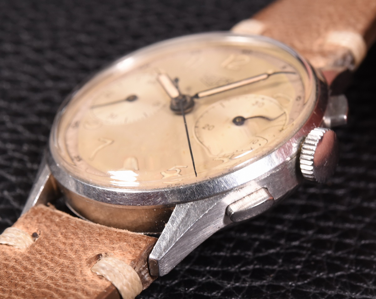 Reference 333 AR has a white dial and registers, with Arabic numerals (radium)