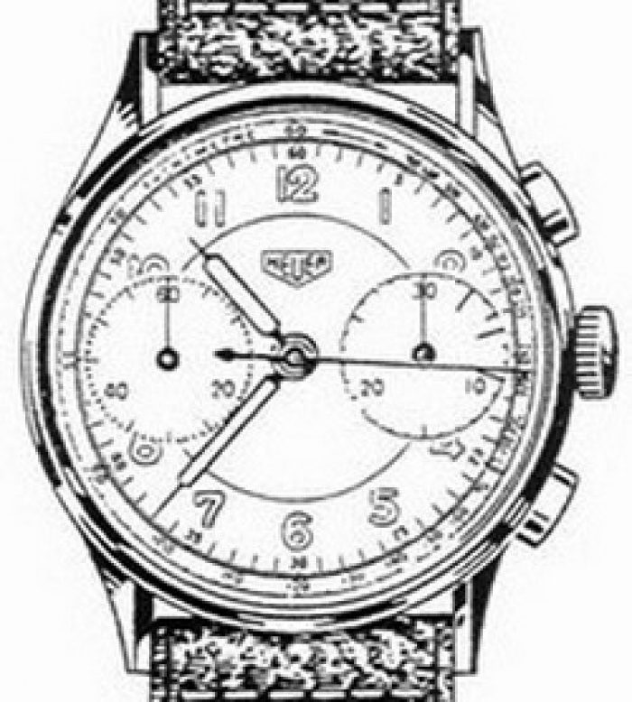 Reference 333 ATR has a white dial and registers; painted numerals and markers (radium); with a Tachymeter scale