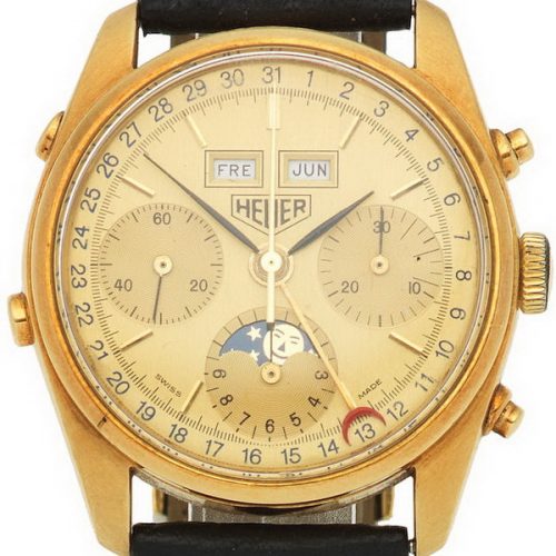 Below, we show each of the 14 Heuer chronographs that were included in the sale, along with a table showing the prices realized in the sale.