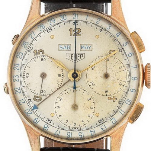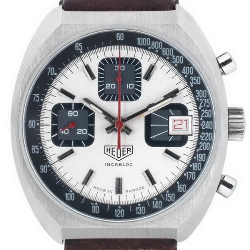 Below, we show each of the 16 Heuer chronographs that were included in the sale, along with a table showing the prices realized in the sale.